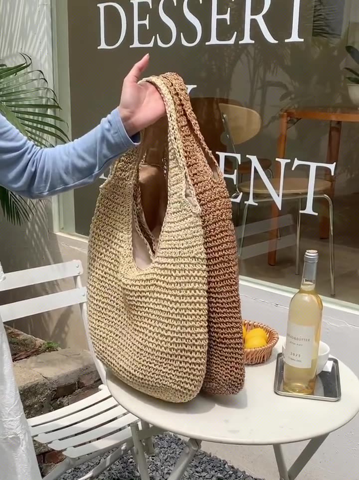 Fake wind grass woven bag shoulder bag new tote bag large capacity casual hand-held woven bag