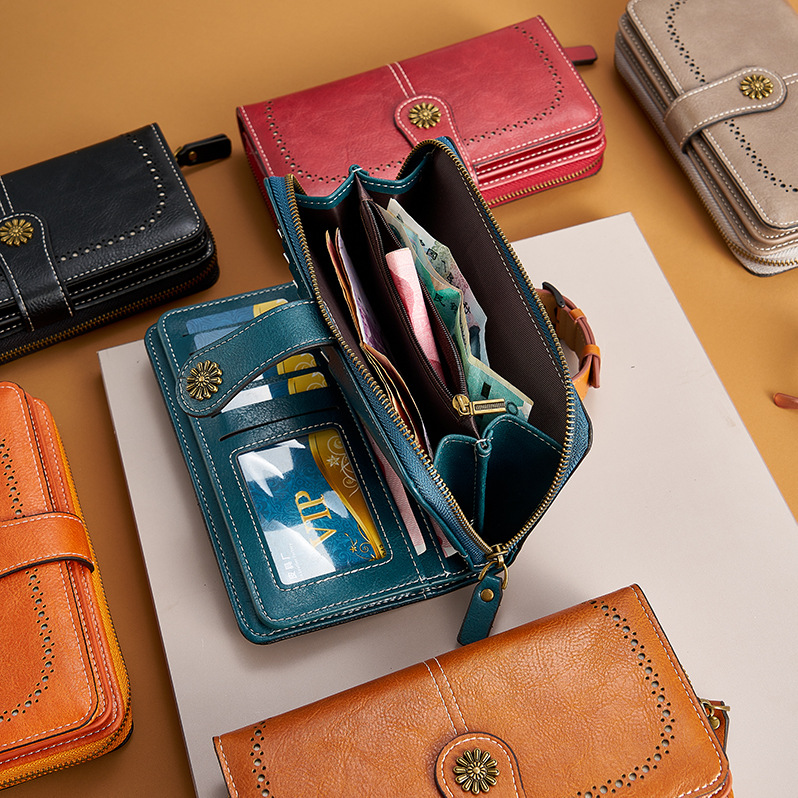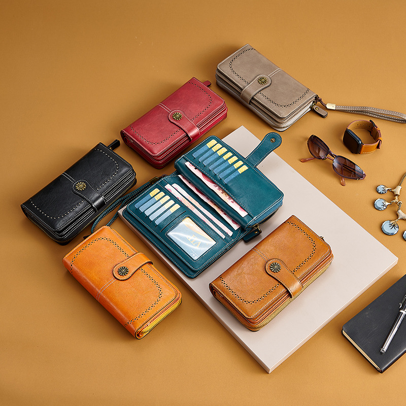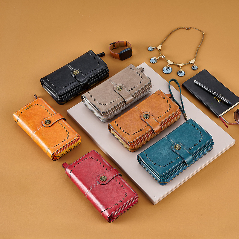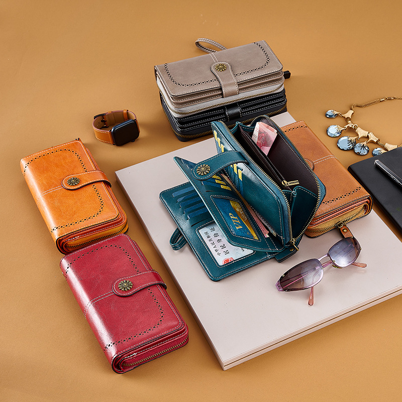 Retro hot selling new style ladies hand coin purse zipper buckle anti-magnetic long wallet